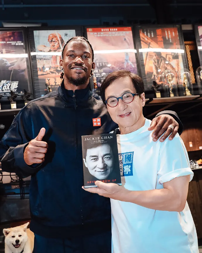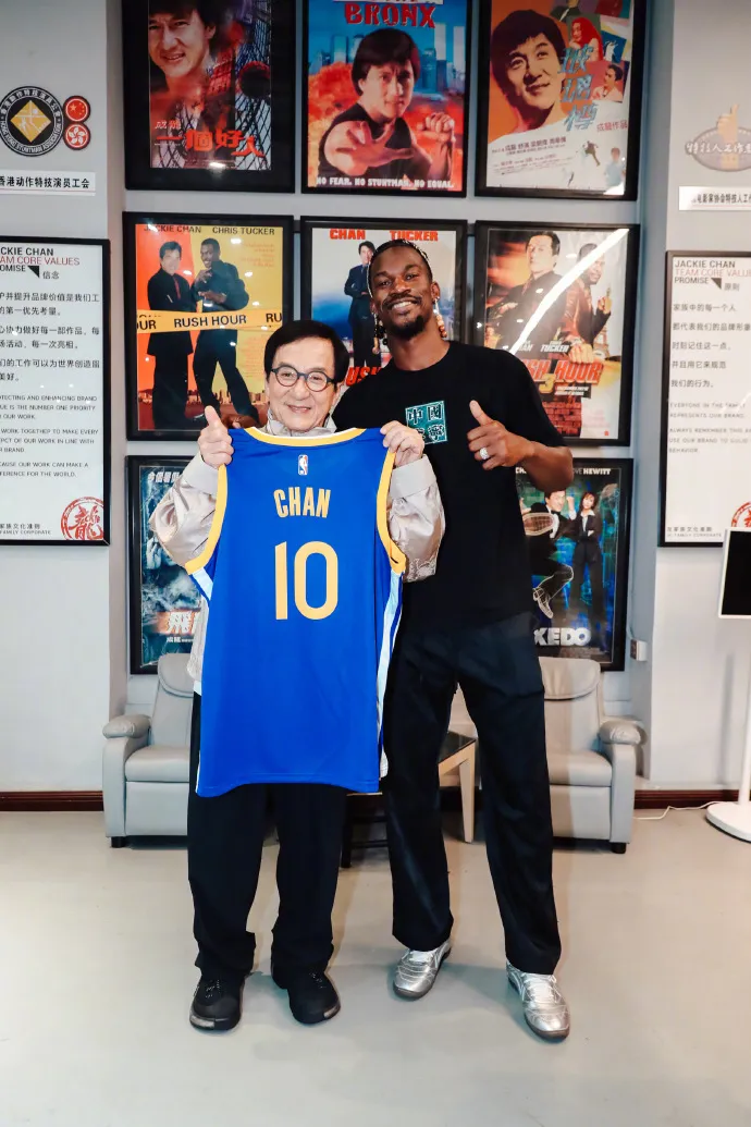 8月4日,勇士官博@金州勇士 晒出巴特勒与成龙的多张合照,成龙获赠写有自己名字的10号勇士球衣。