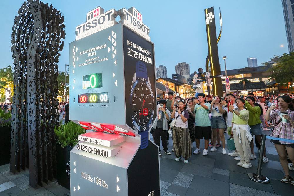 ↑在成都太古里拍摄的世运会倒计时牌。新华社记者张丽芸 摄