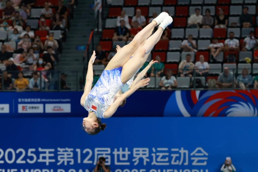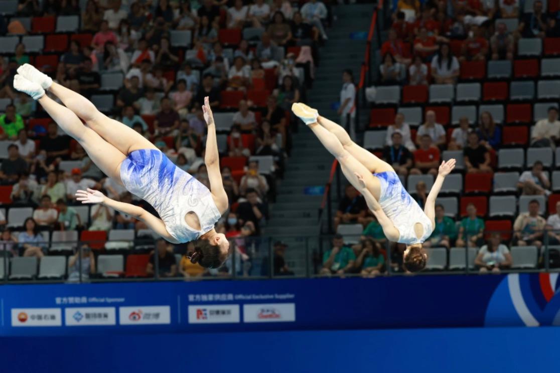 中国队夺得成都世运会蹦床女子双人同步金牌