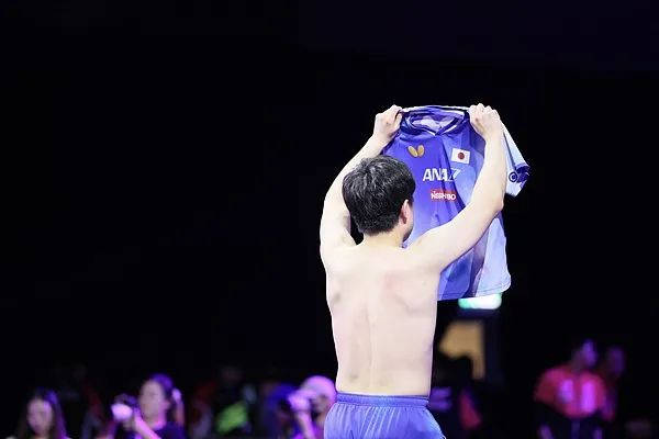 8月11日晚,WTT横滨冠军赛男单决赛举行,日本选手张本智和4比2击败中国选手王楚钦获得冠军,并终结对王楚钦的连败纪录。赛后,张本智和很兴奋,小跑向中国男乒主教练王皓并与之握手,随后在场地内跳跃着挥拳,脱下自己上身的球衣庆祝夺冠。