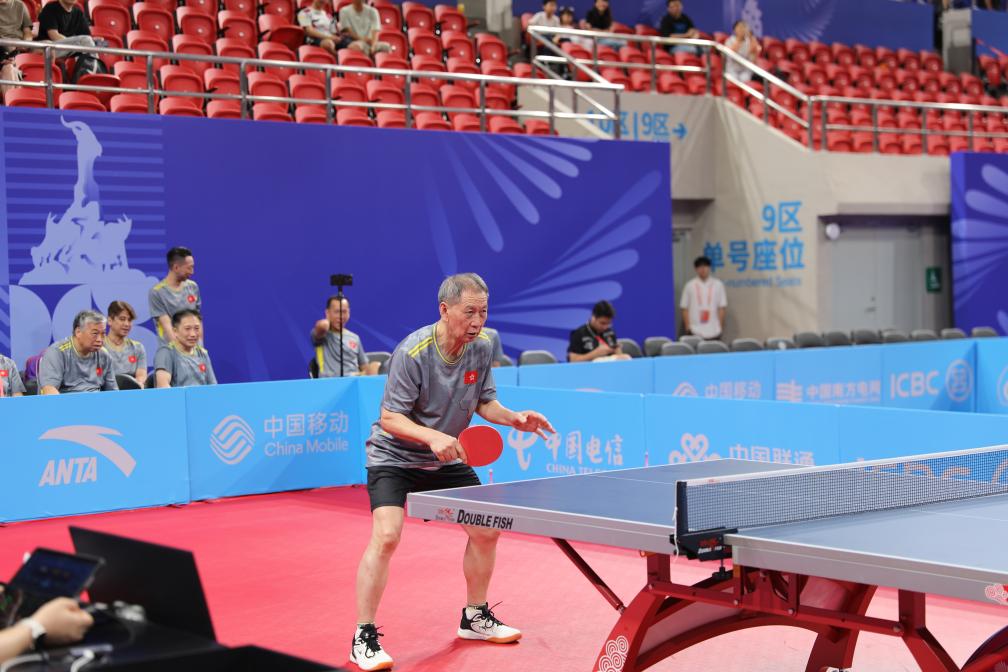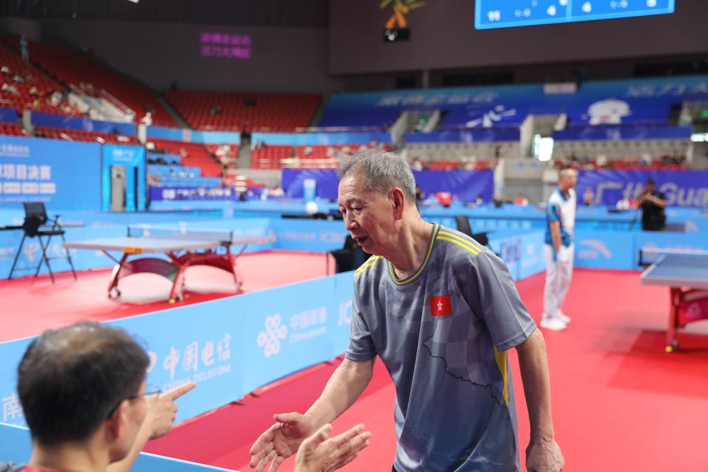 怎么办?打老本行——削球。最终他连扳三局,获得80岁至84岁男子组单打冠军。“把他防‘死’了,就算我打不过他们,我也要享受这个过程。”