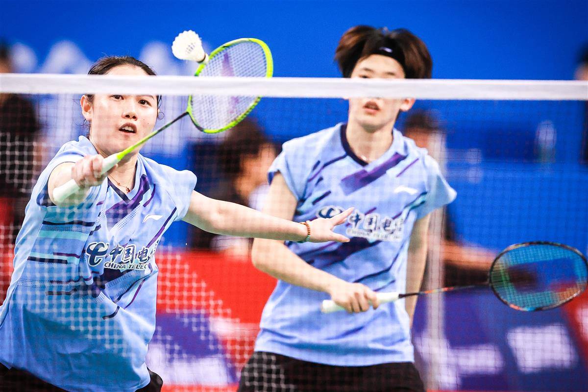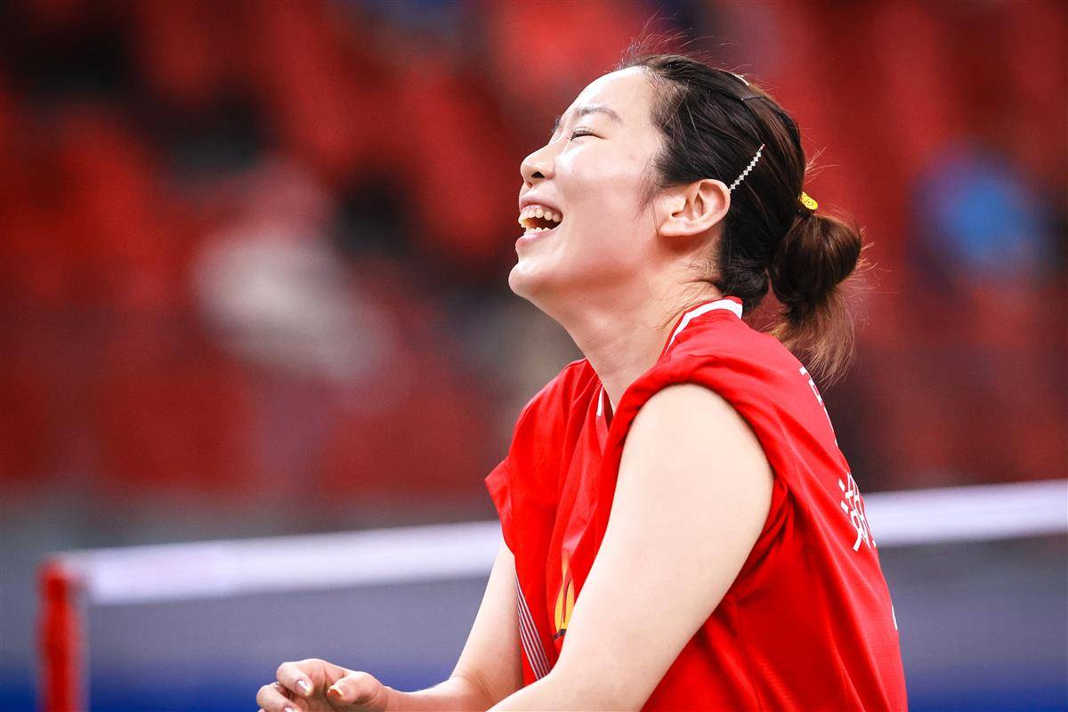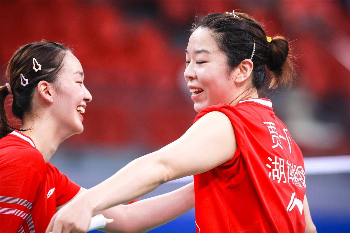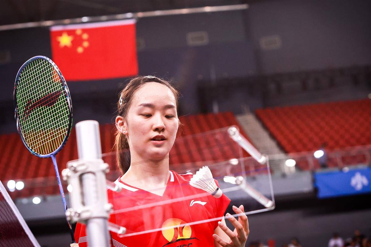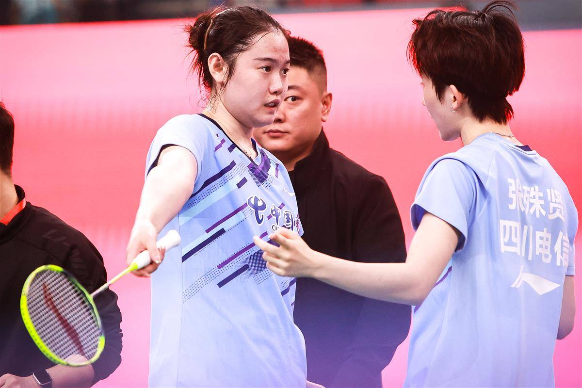 8月14日,十五运羽毛球资格赛在宜昌奥体继续进行,在当晚一场成年组女团焦点比赛中,代表湖南出战的奥运冠军贾一凡携手小将张驰,以2比1(16-21、21-12、26-24)逆转国家队队友、四川组合郑雨/张殊贤。中国羽毛球协会主席张军、奥运冠军谌龙等众多羽毛球名宿现场观赛。(湖北日报全媒记者时龚摄)