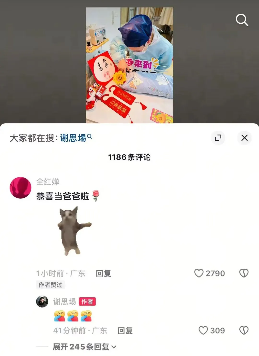 全红婵现身评论区:恭喜当爸爸啦。王宗源表示:恭喜谢哥当爸爸啦。