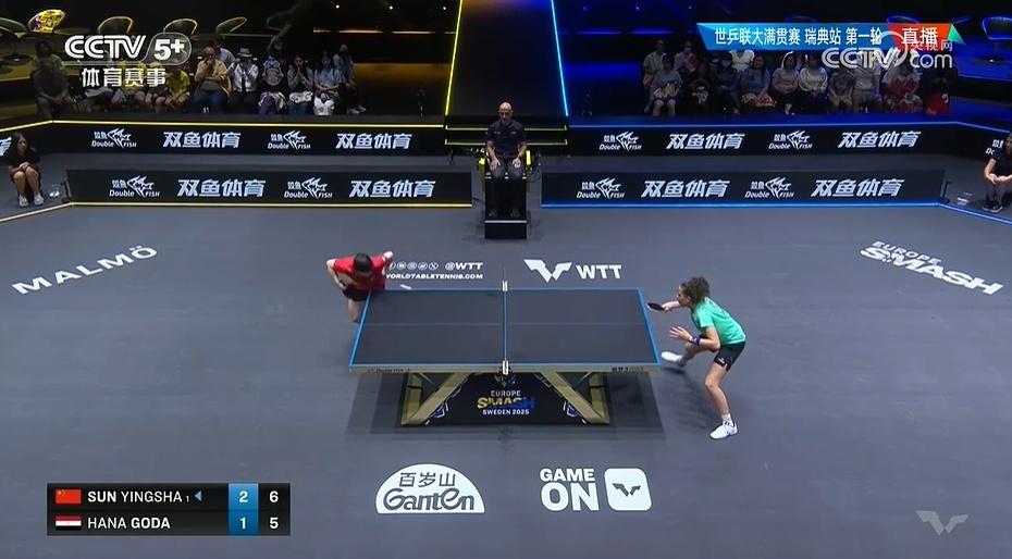 2025WTT欧洲大满贯瑞典站女单1/32决赛,孙颖莎迎战埃及选手汉娜·高达。在开局落后的情况下,孙颖莎迅速调整状态,连扳三局,最终3-1战胜对手,顺利晋级。