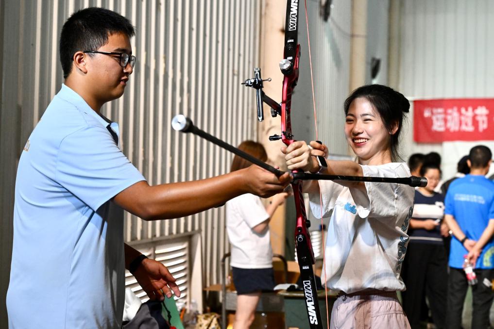 “这里场地大、设备新,很享受!”市民肖女士说,她通过世运会喜欢上了射箭,专门来体验。