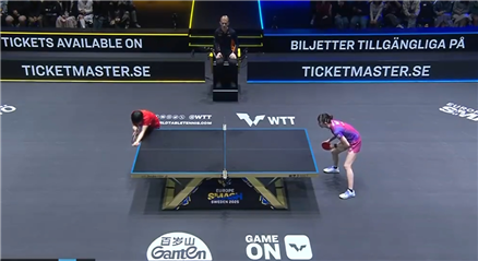 WTT欧洲大满贯瑞典站女单1/8决赛,孙颖莎3-0战胜早田希娜,晋级女单8强,三局比分分别为11-5,11-8,11-5。