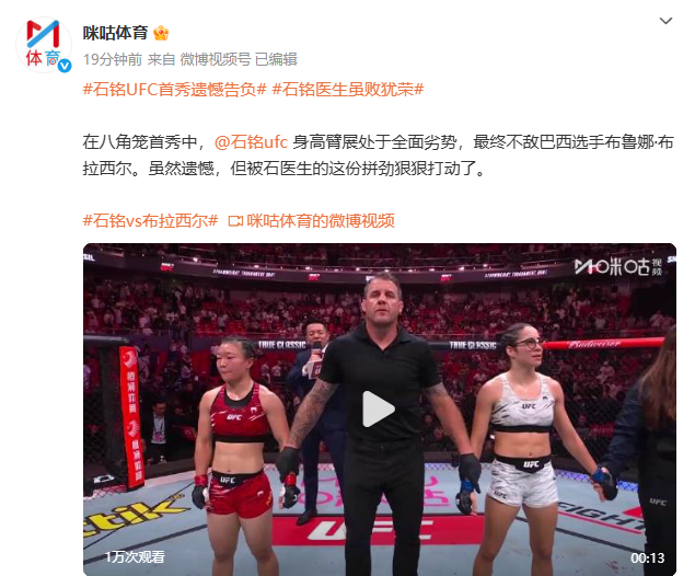 在八角笼首秀中,@石铭ufc 身高臂展处于全面劣势,最终不敌巴西选手布鲁娜·布拉西尔。虽然遗憾,但被石医生的这份拼劲狠狠打动了。