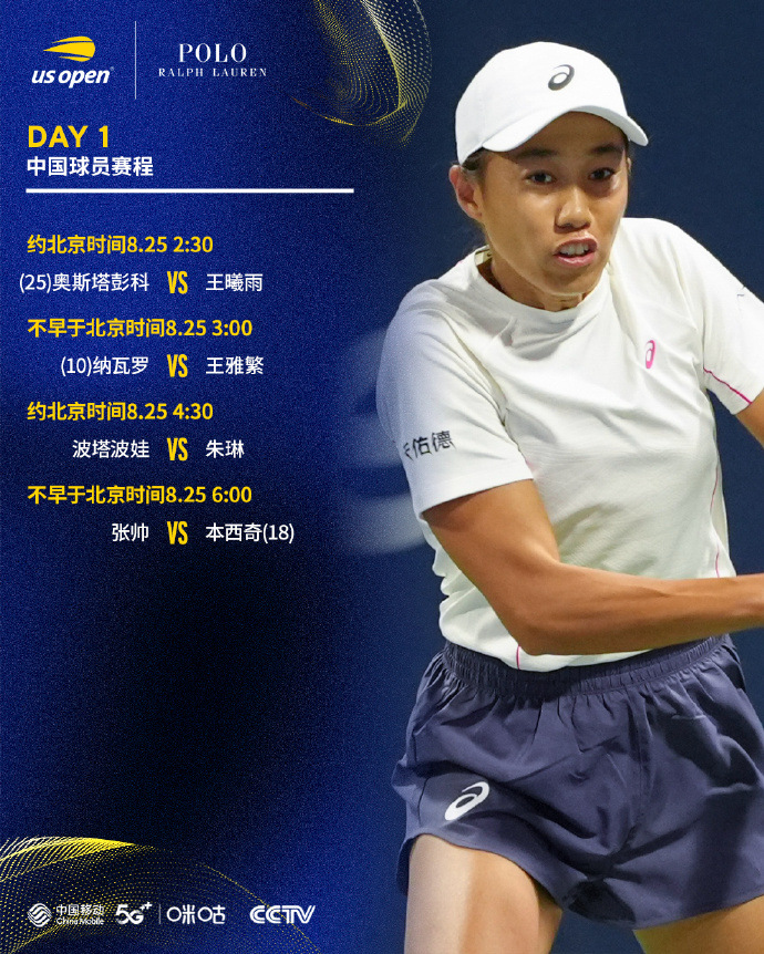 2025美网单打赛事将在今天晚上正式拉开序幕,中国选手王曦雨、王雅繁、朱琳、张帅出战首个比赛日。