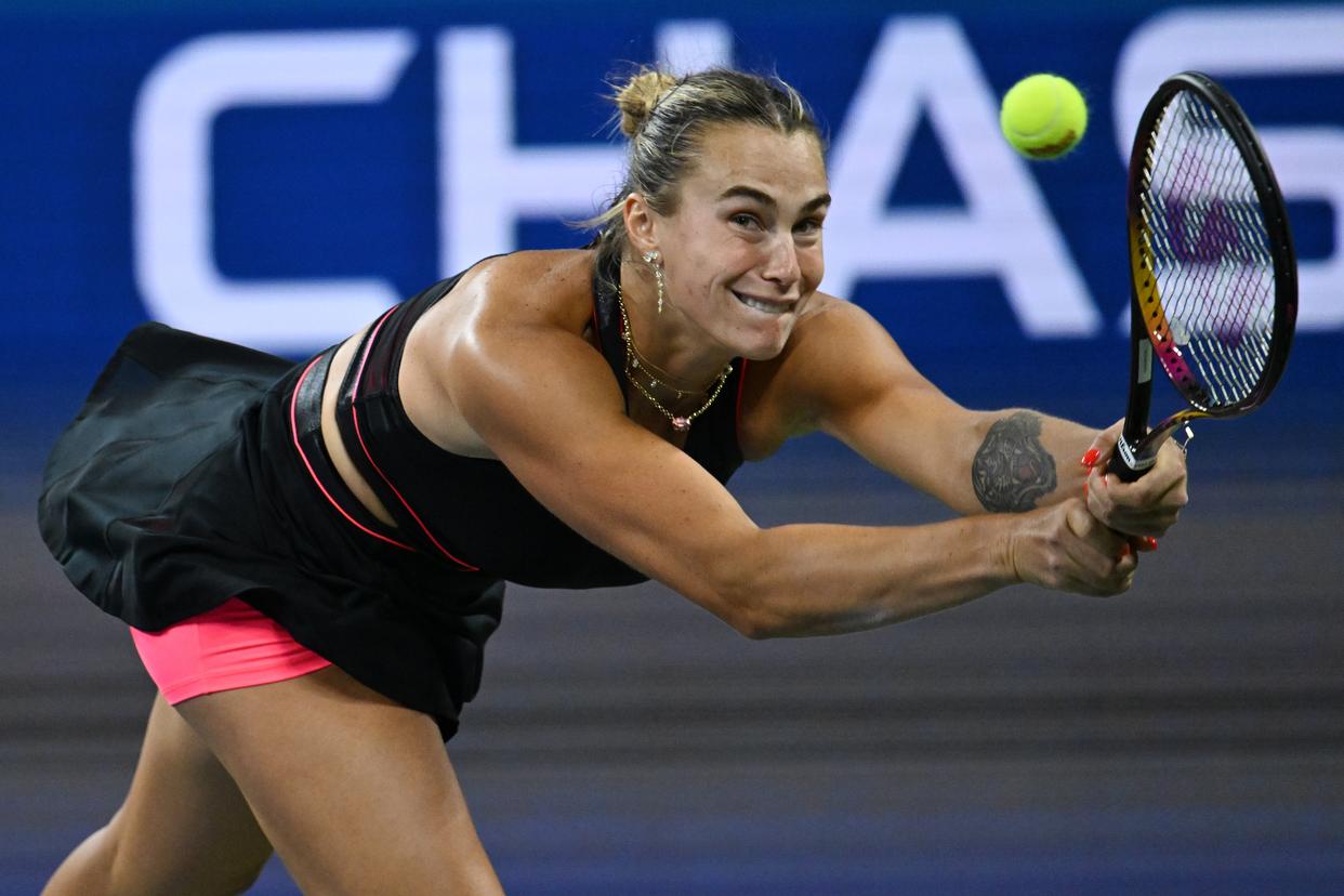 8月29日,萨巴伦卡在比赛中回球。新华社记者 李睿 摄