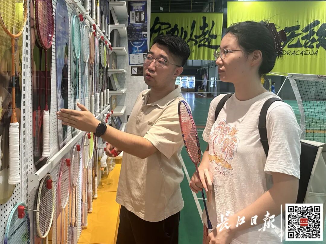 球友在的幸国际羽球馆选购球拍。记者张衡 摄