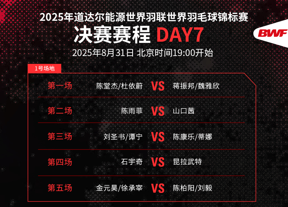 北京时间今天(31日)19:00,2025年羽毛球世锦赛各单项决赛开战,国羽将冲击全部五个单项冠军。
