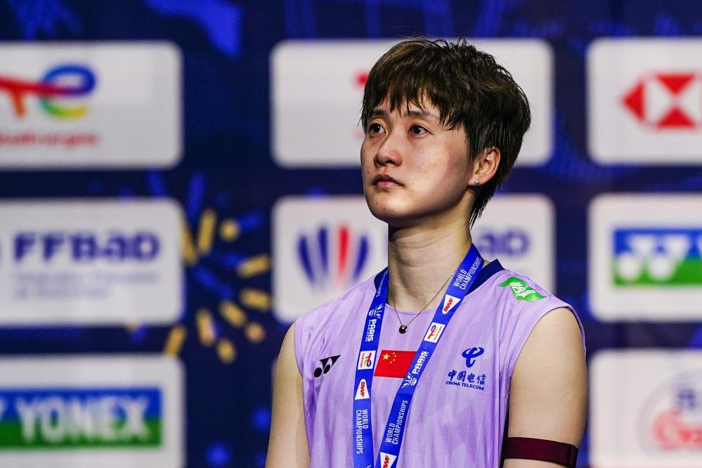 8月31日,陈雨菲在女单颁奖仪式上眼含泪水。新华社记者 彭子洋 摄