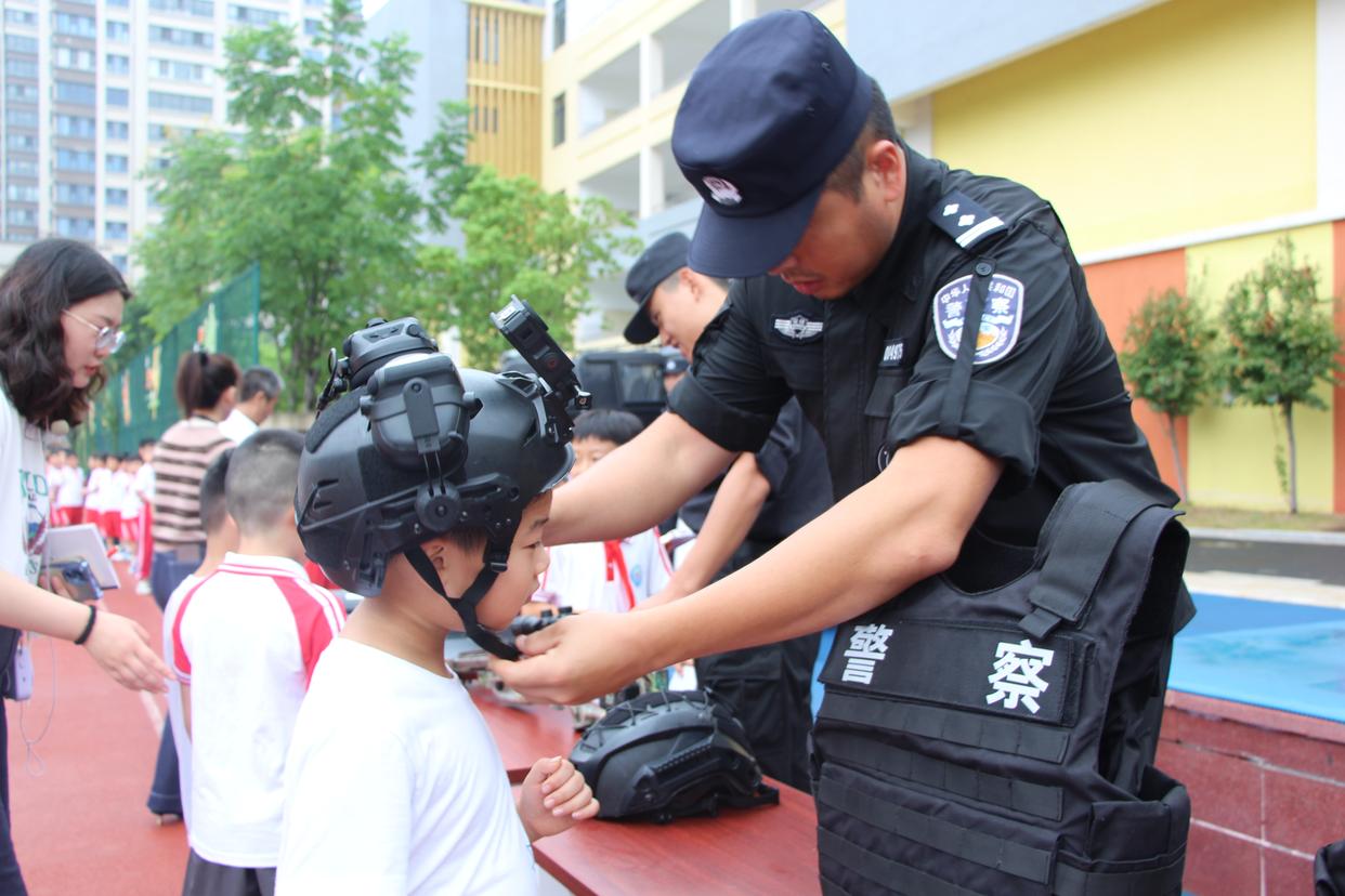 特警队员和小学生互动