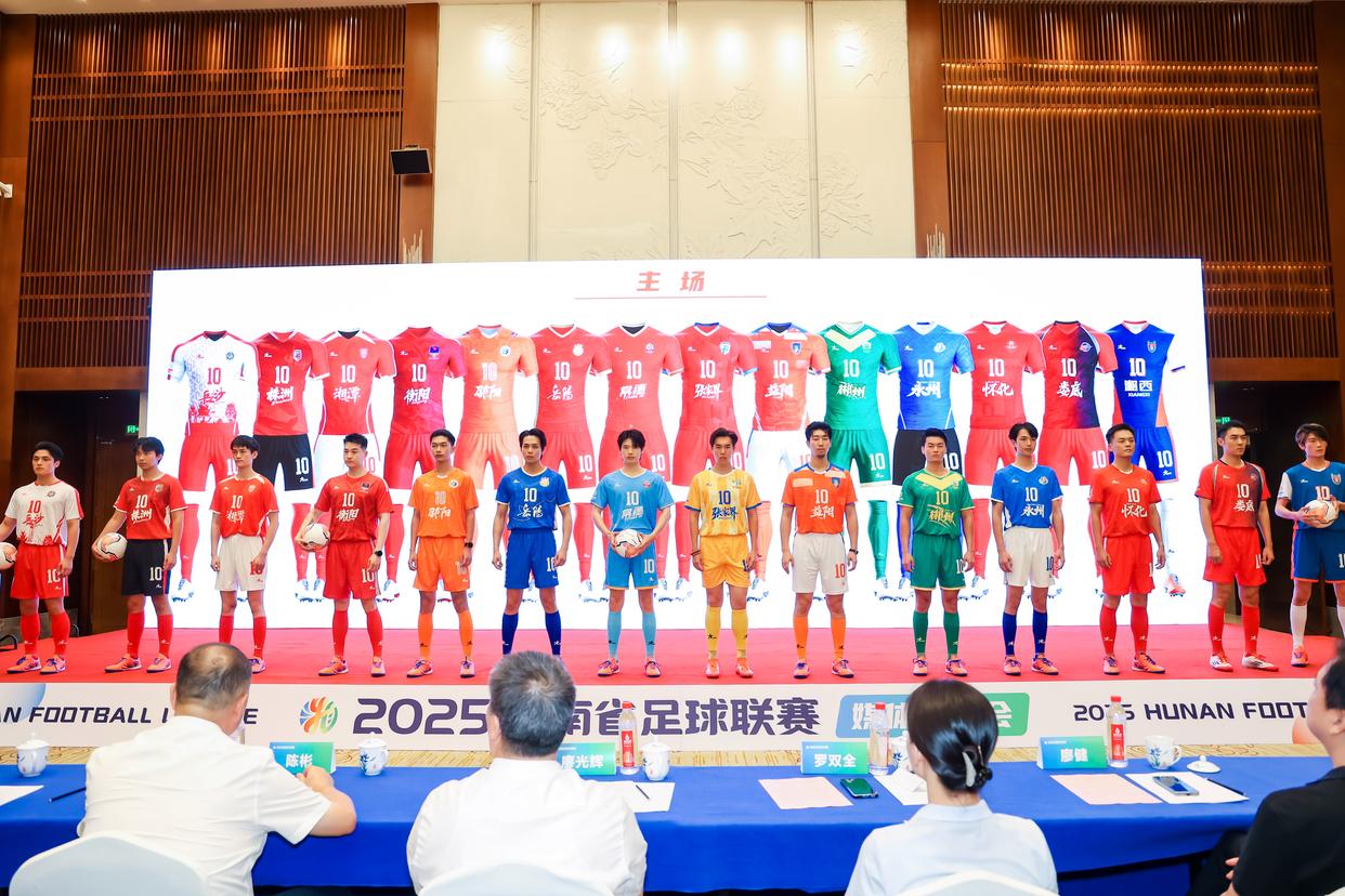 2025湖南省足球联赛媒体见面会球衣展示环节。