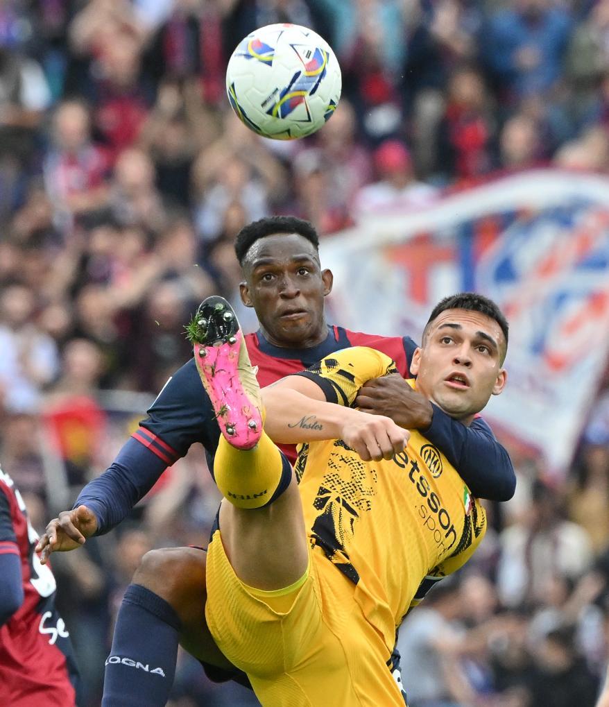 4月20日,在2024-2025赛季意大利足球甲级联赛第33轮比赛中,博洛尼亚队球员卢库米(左)与国际米兰队球员劳塔罗·马丁内斯(右)在比赛中拼抢。新华社发(阿尔贝托·林格利亚摄)当然也有不少球队在现行的转会政策中受益。比如临近意甲新赛季开赛,那不勒斯宣布卢卡库将长期伤缺,卫冕冠军加急从曼联引进霍伊伦,避免了球队在多线作战的情况下只有卢卡一名正印中锋的尴尬。