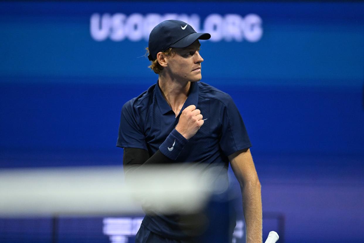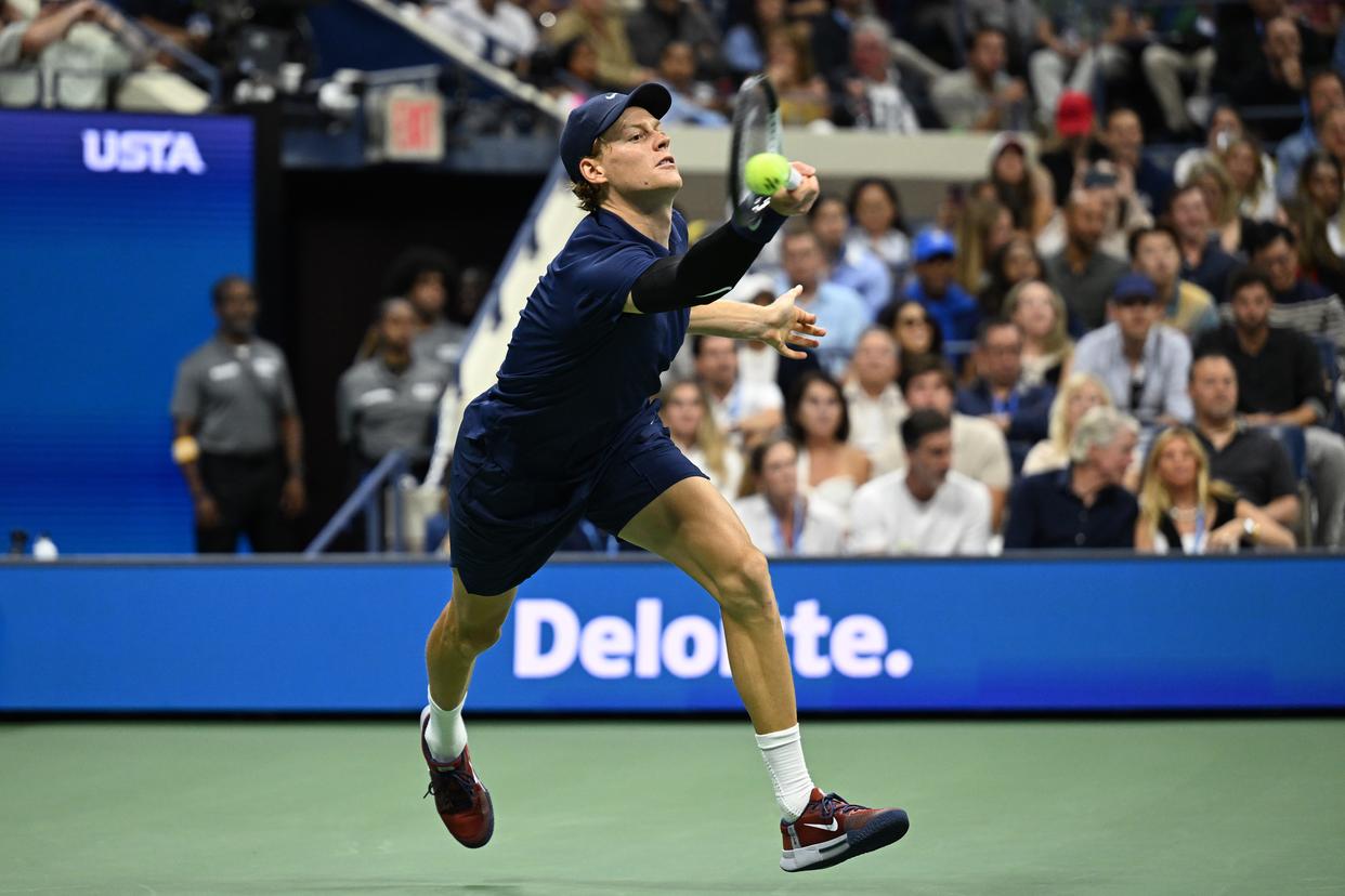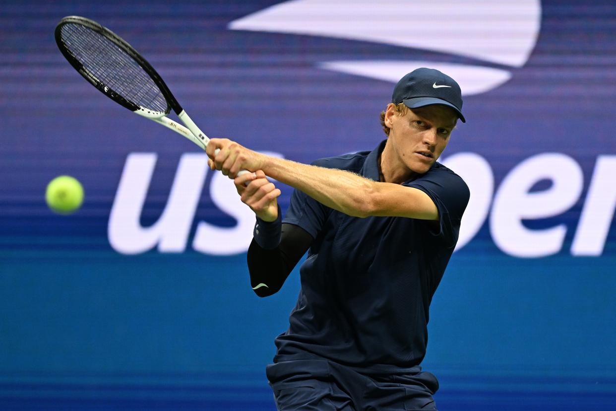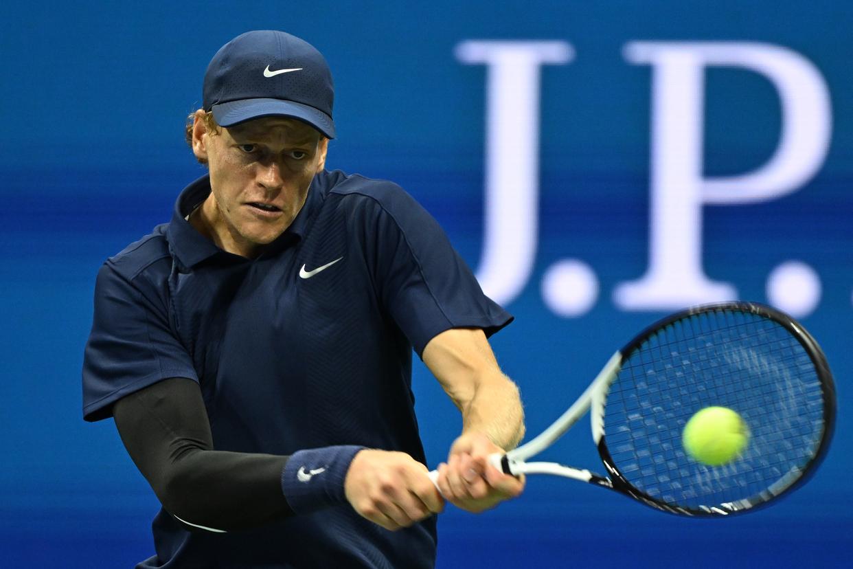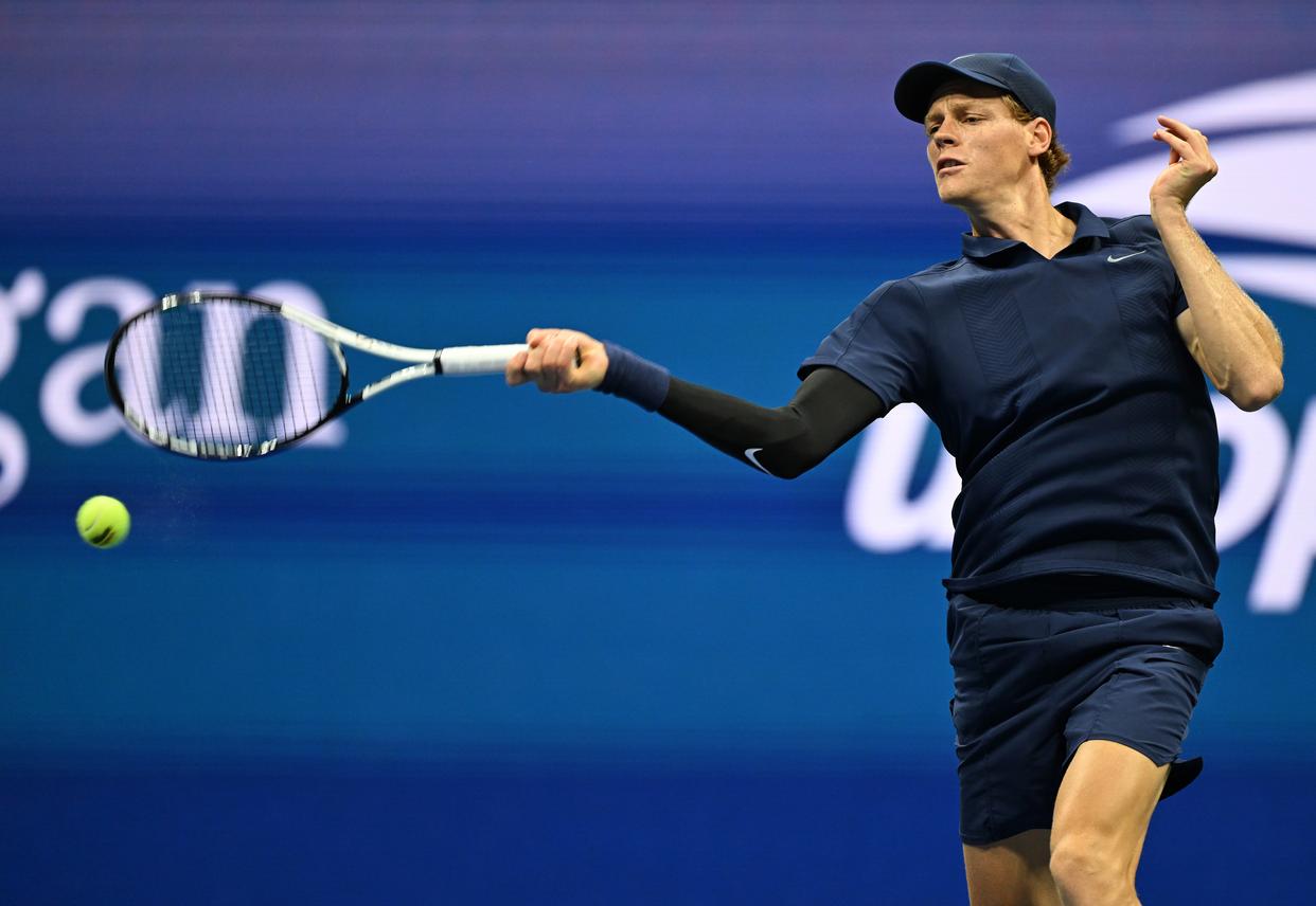 9月1日,辛纳在比赛中回球。新华社记者 李睿 摄
