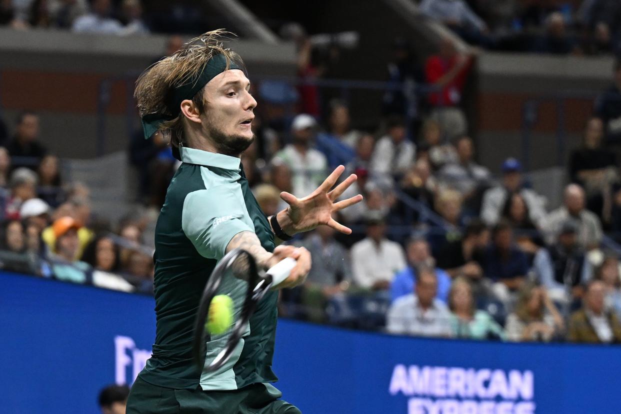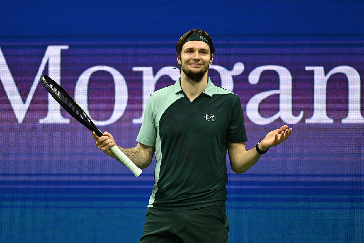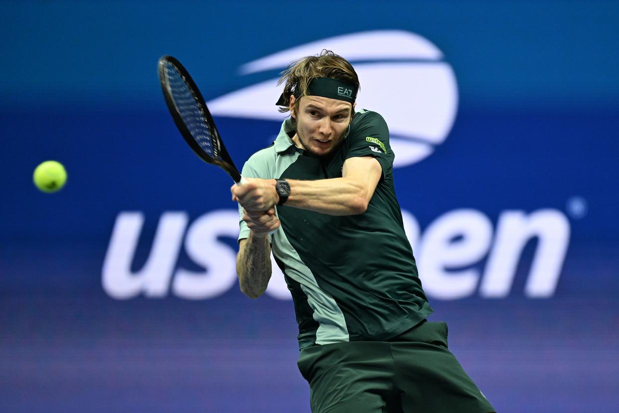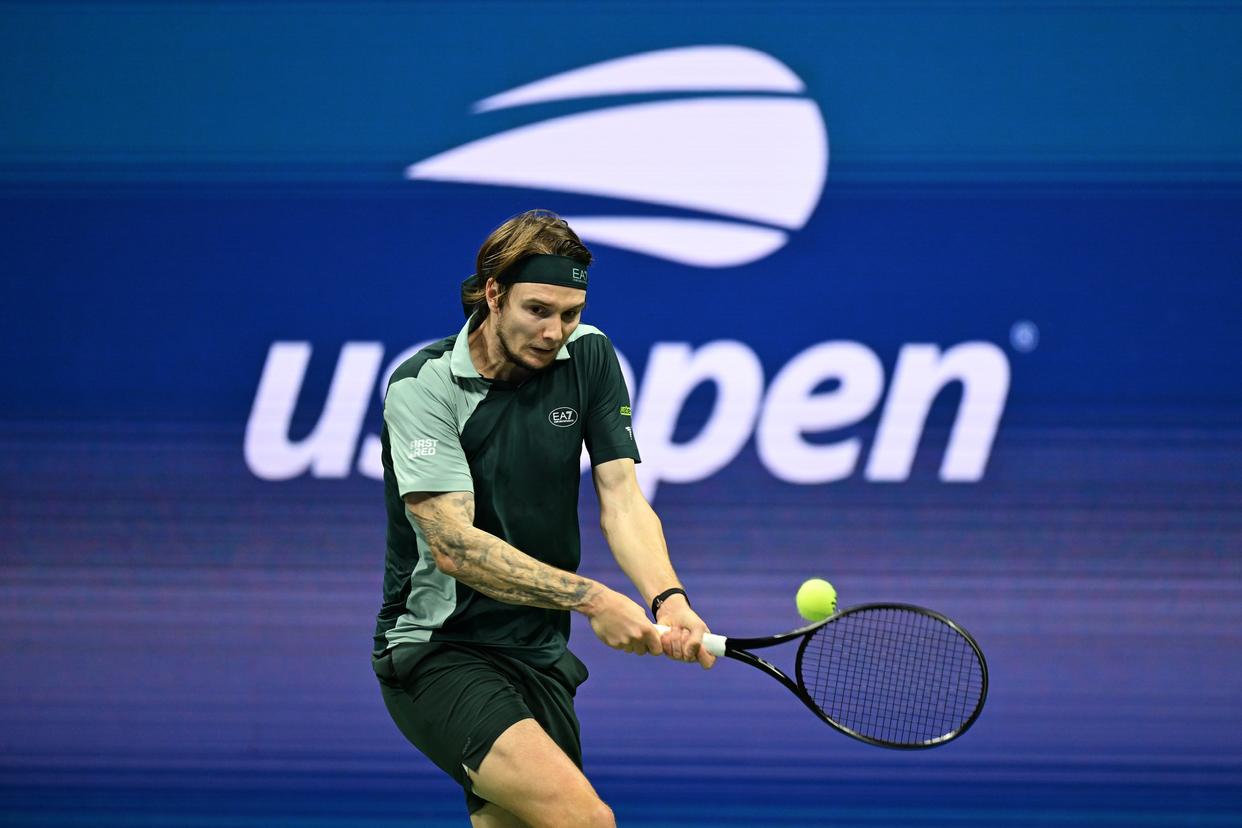 9月1日,布勃利克在比赛中回球。新华社记者 李睿 摄