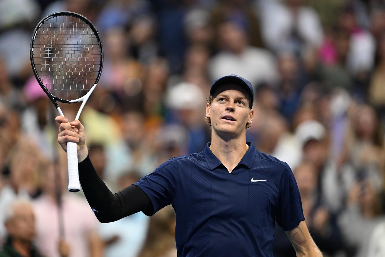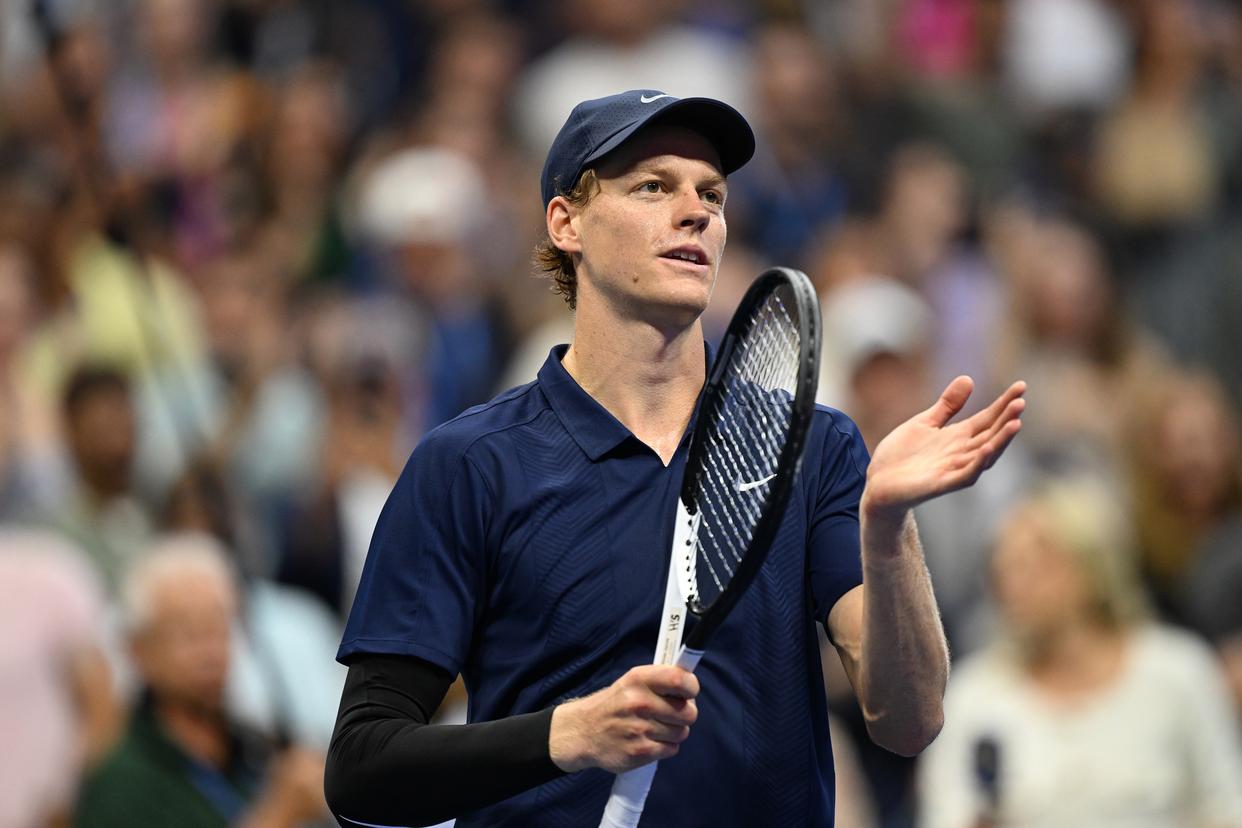 9月1日,辛纳在比赛后向球迷致意。新华社记者 李睿 摄