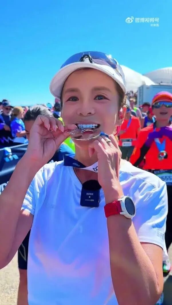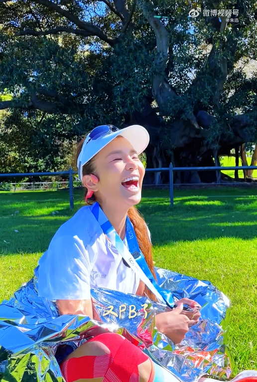 视频开头,她笑着说,“我又PB(Personal Best缩写,个人最好成绩)了!4小时45分完赛。”