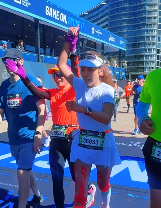 她提到,跑到40公里时,脚的步伐比较机械化,比较麻木,但灵魂却飞起来了。