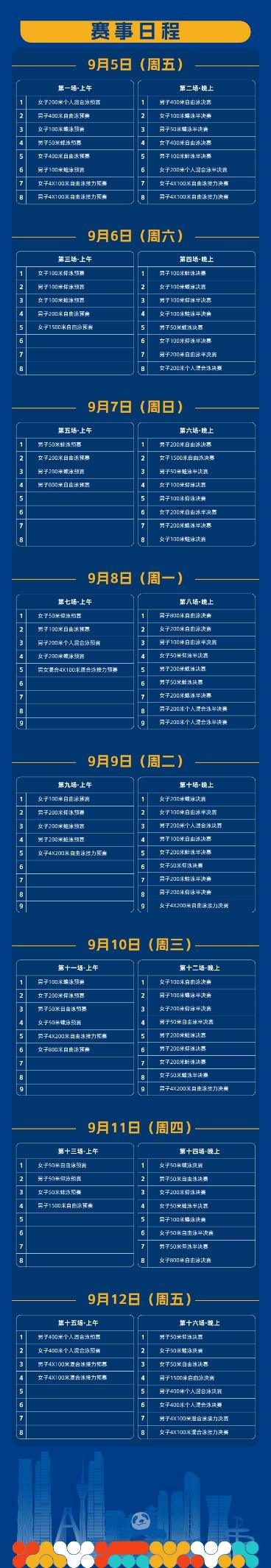2025年9月5日至12日,全国游泳锦标赛将在成都东安湖体育公园游泳跳水馆隆重举行。作为新加坡世锦赛后国内首次游泳项目高水平赛事,本次比赛汇聚了包括奥运冠军、世锦赛奖牌得主在内的全国顶尖游泳运动员。本届赛事设34个单项和7个接力项目,涵盖自由泳、蛙泳、蝶泳、仰泳及混合泳等游泳项目。