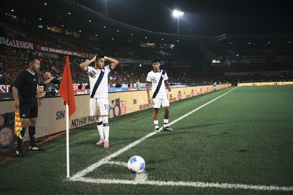 9月8日,危地马拉队球员桑蒂斯(中)准备开角球。新华社记者 许咏政 摄