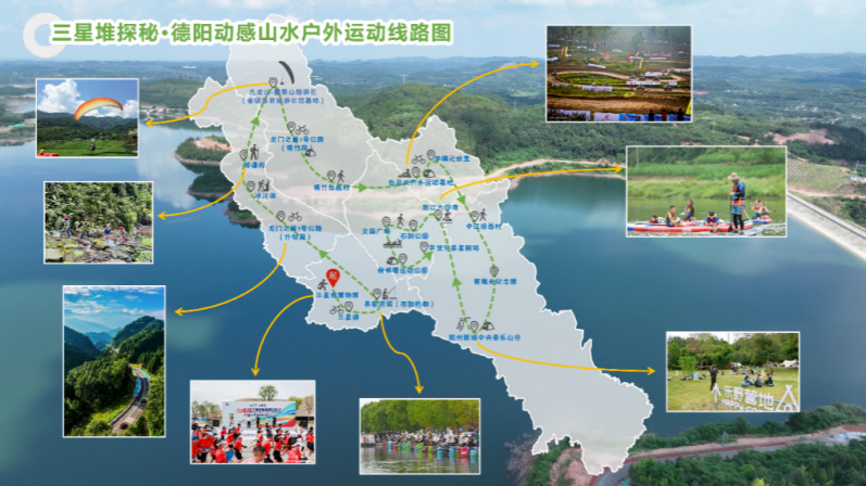 四川省德阳市三星堆探秘·动感山水户外运动线路示意图
