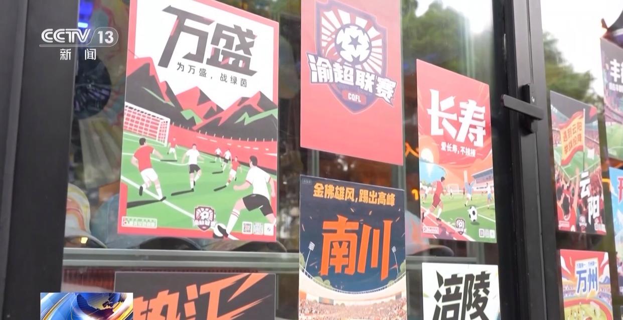 在渝中区的一家文创店,店家新设计的41个参赛代表队的海报挂满橱窗,受到球迷们的喜爱。