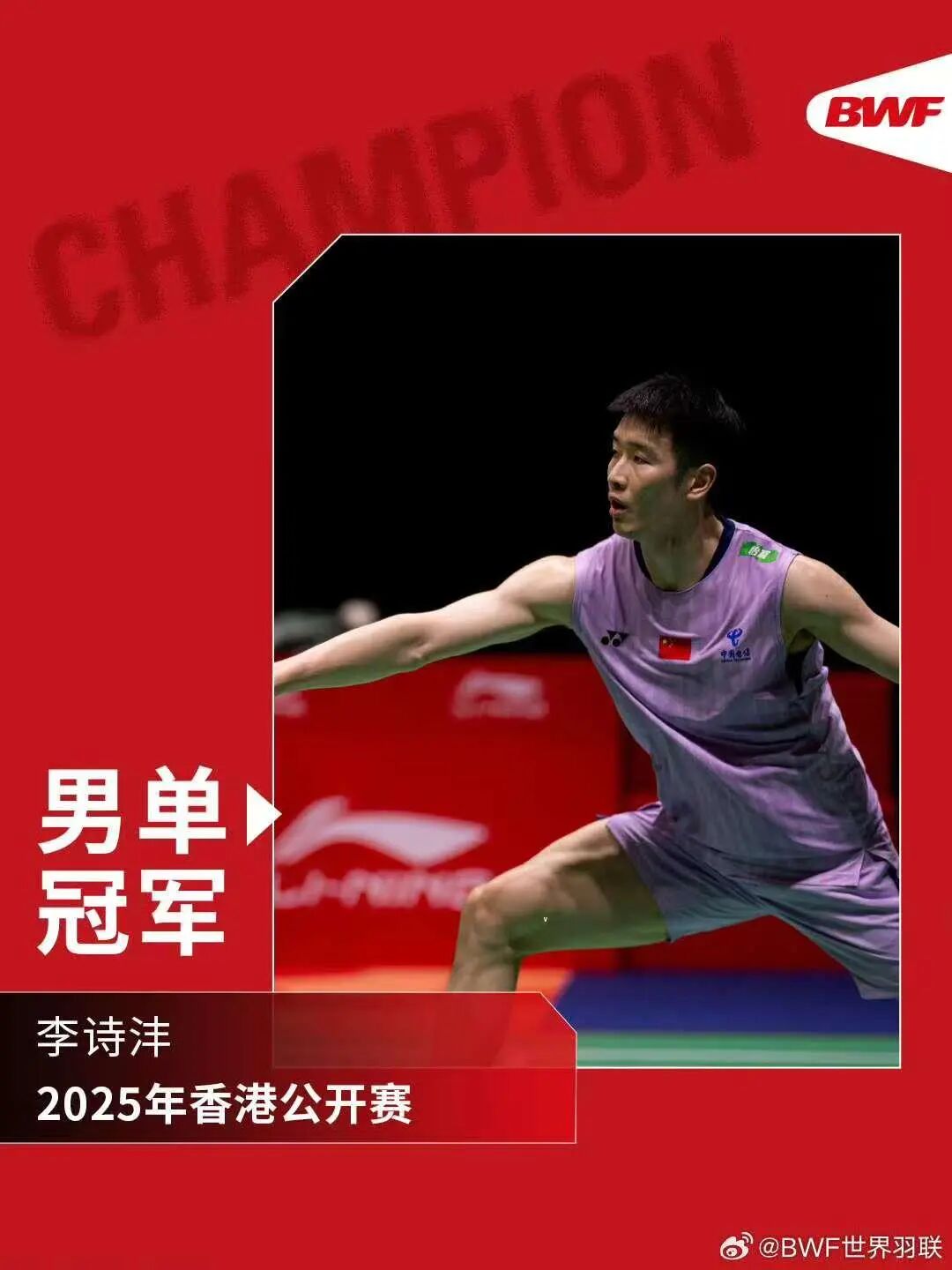 李诗沣夺得中国香港公开赛男单冠军,国羽包揽五金
