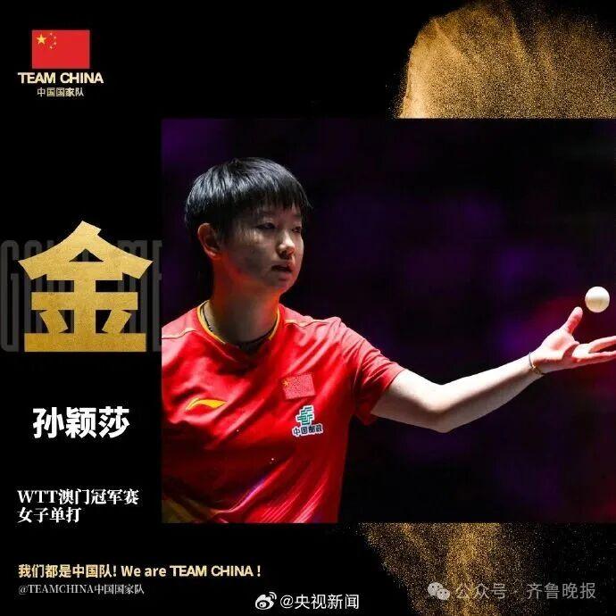 WTT澳门冠军赛女单决赛,孙颖莎4:3战胜队友王曼昱 ,实现卫冕。