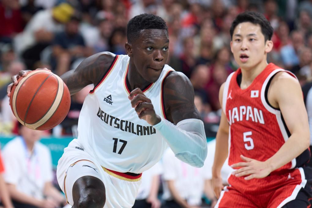 2024年7月27日,德国队球员施罗德(左)在巴黎奥运会男子篮球小组赛中。新华社记者 孟鼎博 摄尽管荣膺本届赛事“最有价值球员”的施罗德已属高龄,但德国男篮队内大多数球员年龄都在21至25岁之间,这也令德国球迷对这批球员有更多期待。