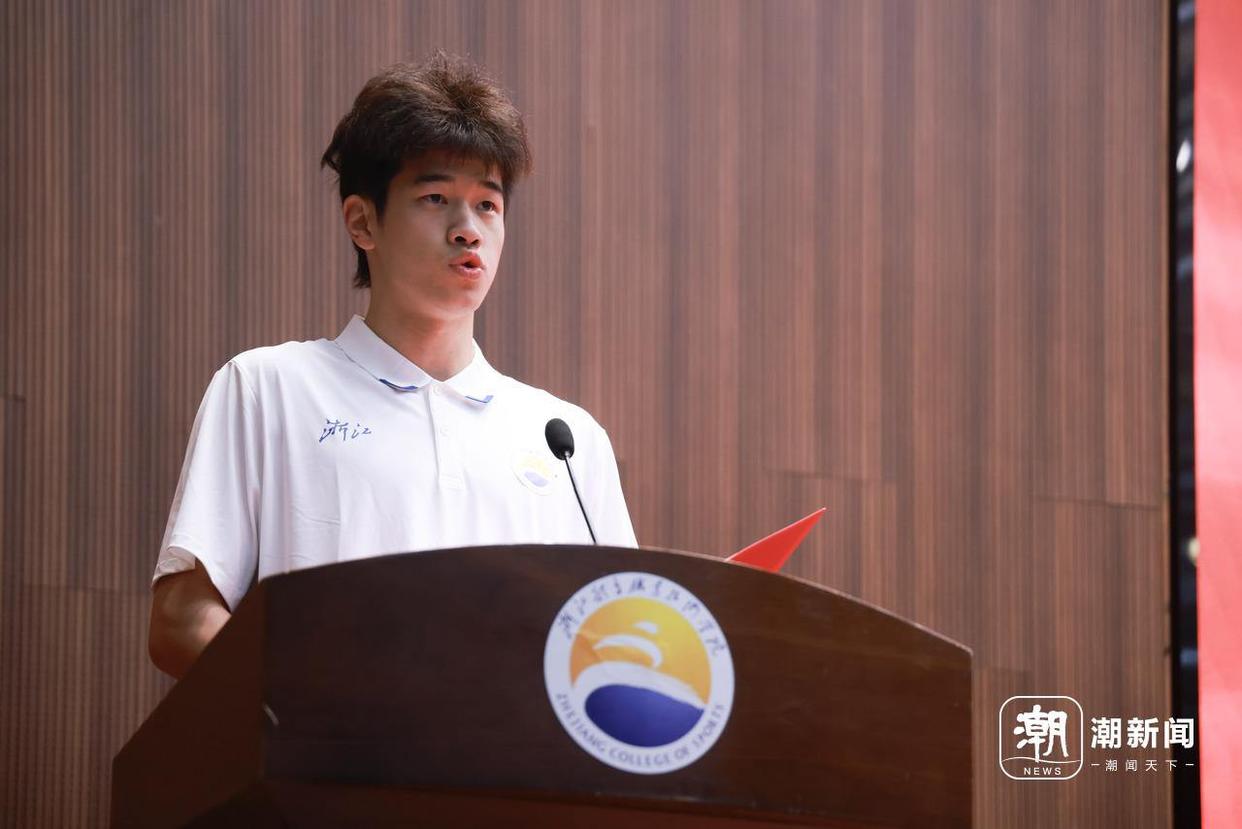 “去年八月份,我就曾说过,奥运会和世锦赛金牌我已经拿到了,但全运金牌还没拿到,本次全运会我将全力以赴冲击个人的全满贯。”潘展乐作为运动员代表发言时表示,多年的运动生涯令他深信,成功没有捷径,都是靠平时的积累。“‘专注自己、做好自己’,相信我们一定能在全运舞台上展现出学院体育健儿昂扬向上得精神状态和勇立潮头的责任担当。”