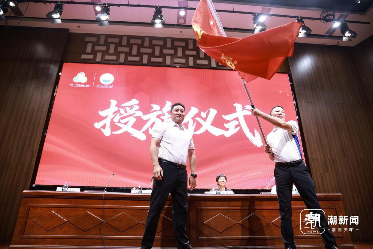 随后,六个竞技体育系主任依次从学院党委书记郭海英和党委副书记、院长孟关良手中接过象征荣誉和责任的战旗时,台下的运动员、教练员、管理保障人员齐声高喊本系的决心口号,现场气氛热烈而振奋,极大鼓舞了全体参赛保障人员的士气。