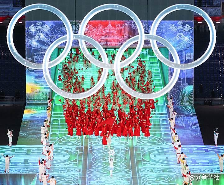 ↑2022年2月4日晚,第二十四届冬季奥林匹克运动会开幕式在北京国家体育场举行。这是中国代表团在开幕式上入场。 新华社记者 杨磊摄
