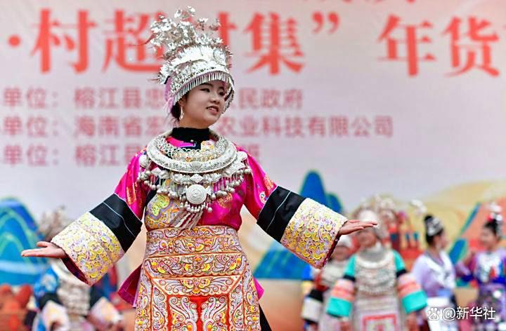 ↑2025年1月21日,一名苗族女孩在贵州省榕江县忠诚镇“黔农乡市·村超村集”年货节活动中展示民族服饰。自“村超”赛事走红以来,贵州省榕江县积极开办流动“村超村集”,吸引众多游客和居民前往购买农特、文创产品,并在集市附近同步举办趣味足球赛、民族文化表演等活动。“村超村集”的举办将“村超”的流量和欢乐注入了乡村,并刺激了乡村消费。 新华社记者 杨文斌 摄
