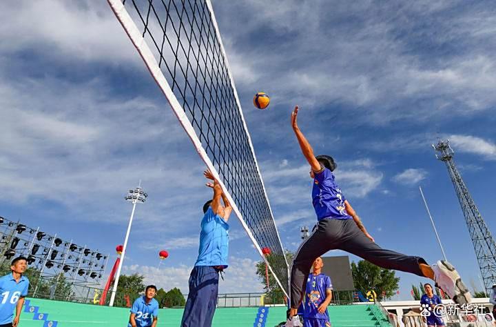 ↑2023年8月22日 ,昂素镇巴彦希里嘎查参赛队员在比赛场地进行赛前训练。当日,鄂托克前旗“草原VA”暨“蒙陕甘宁晋”五省区农牧民排球邀请赛在内蒙古鄂尔多斯市鄂托克前旗昂素镇拉开帷幕,来自内蒙古、陕西、甘肃、宁夏、山西等地的农牧民排球队参加比赛。昂素镇排球运动群众基础雄厚,近年来,当地政府通过完善农村牧区体育设施、开展以排球运动为主要内容的全民健身活动,打造“排球特色小镇”,形成“村村有球队、月月有球赛”的良好排球运动氛围。新华社发(王正摄)