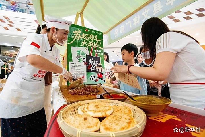 ↑2025年6月28日,消费者在泰州市海陵区万达广场“跟着苏超游徐州”徐州文旅(泰州)推介会上品尝食品。在江苏省城市足球联赛泰州队主场比赛期间,联赛各场次比赛购票观众和客场球队城市市民,均可享受泰州48家旅游景区免费入园、免费品尝泰州早茶,以及停车、住宿、购物等多项优惠。本次跟着“苏超”逛泰州活动整合住宿、餐饮、文旅等多元业态,推出多项创新举措,借赛事东风,促文旅消费。 新华社发(杨玉岗 摄)