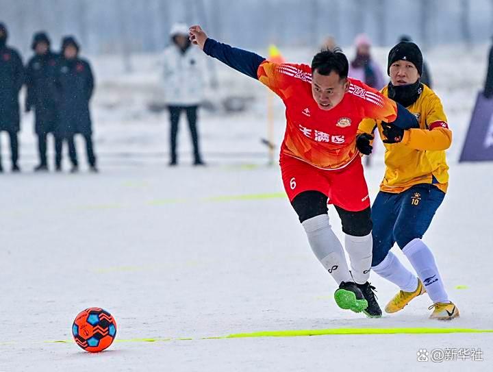 ↑2024年12月23日,南北乡村雪地足球邀请赛在吉林省舒兰市小城镇南阳村举行。贵州省榕江县的贵州村超队从3000公里外远赴东北,与东道主吉林市丰满区代表队在冰天雪地中开展一场友谊赛。 新华社记者 颜麟蕴 摄