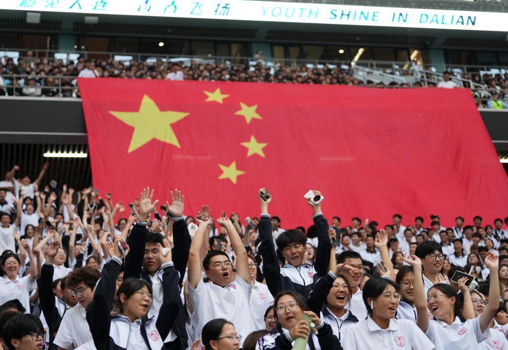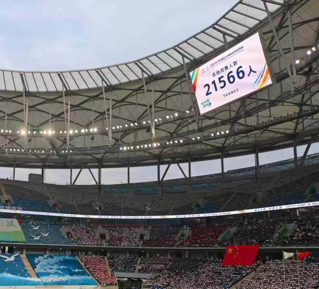 本场比赛观赛人数为21566人。冯蕾 摄(新华社发)一场大学生足球赛