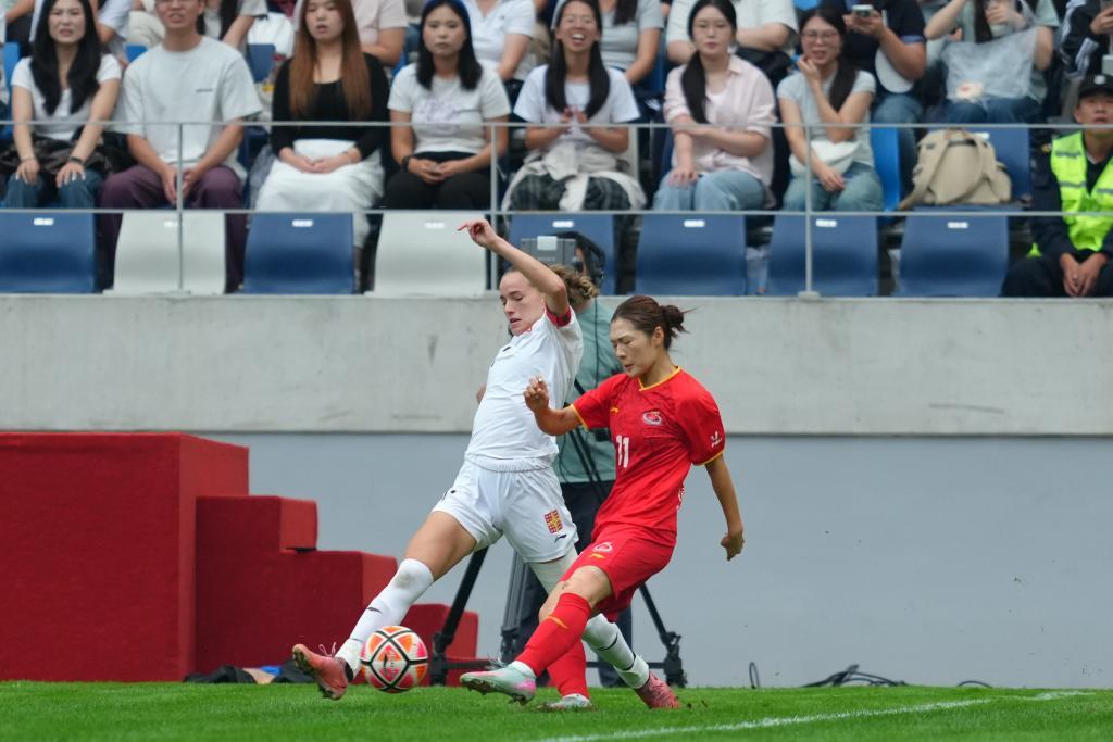 9月27日,观众为上海体育大学女足球员加油助威。新华社记者 李钢 摄第20分钟