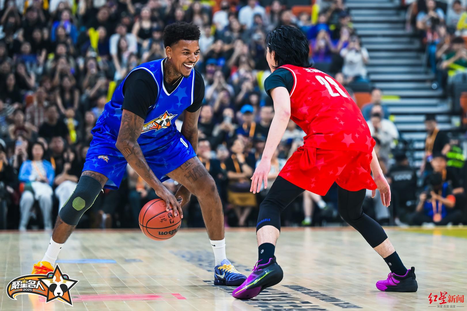 “2025聚星名人赛”分为“聚星队”和“名人队”。聚星队囊括了雷·阿伦、保罗·皮尔斯、王鹤棣、阎鹤祥、吴勇豪等人,昔日“凯尔特人三巨头”中两位传奇在成都再次合体,让人兴奋不已;“名人队”则由理查德·汉密尔顿、尼克·杨、吴尊、黄曦彦、丁彦雨航、赵爽等人组成。四川本土演员王鹤棣在这晚堪称人气爆棚,他在比赛中的每一次触球都能在看台上掀起巨大的欢呼声。在比赛中,王鹤棣不但接连得分,而且能攻能守,有一次单防“NBA单打王”尼克·杨的场面更是让全场热血沸腾。