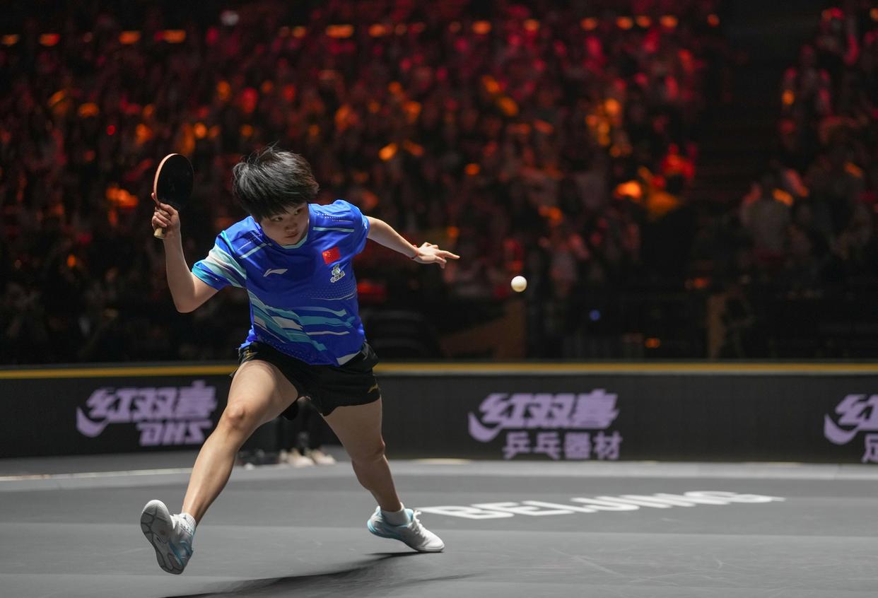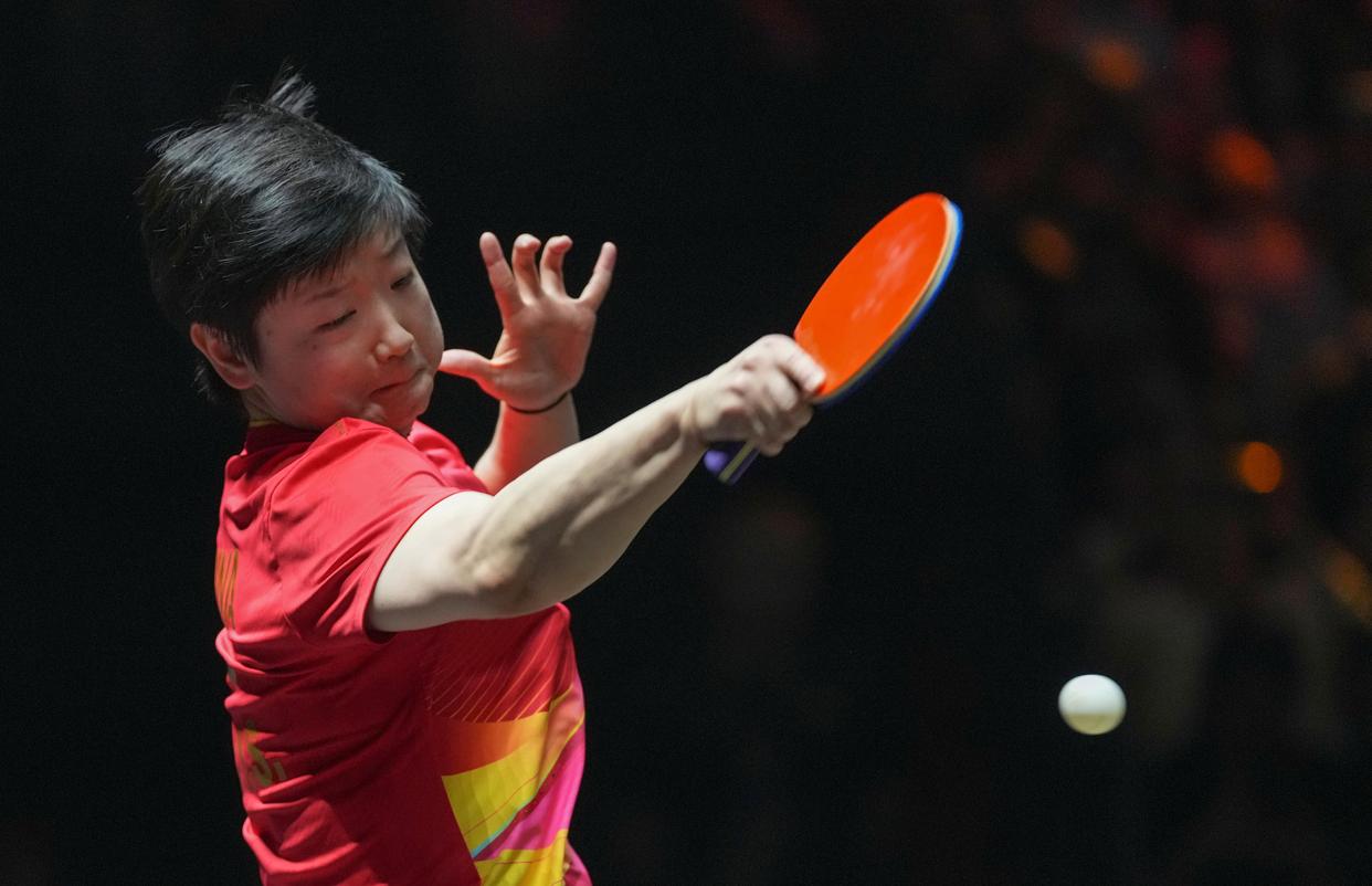 9月30日,孙颖莎在比赛中回球。新华社记者 孙非 摄