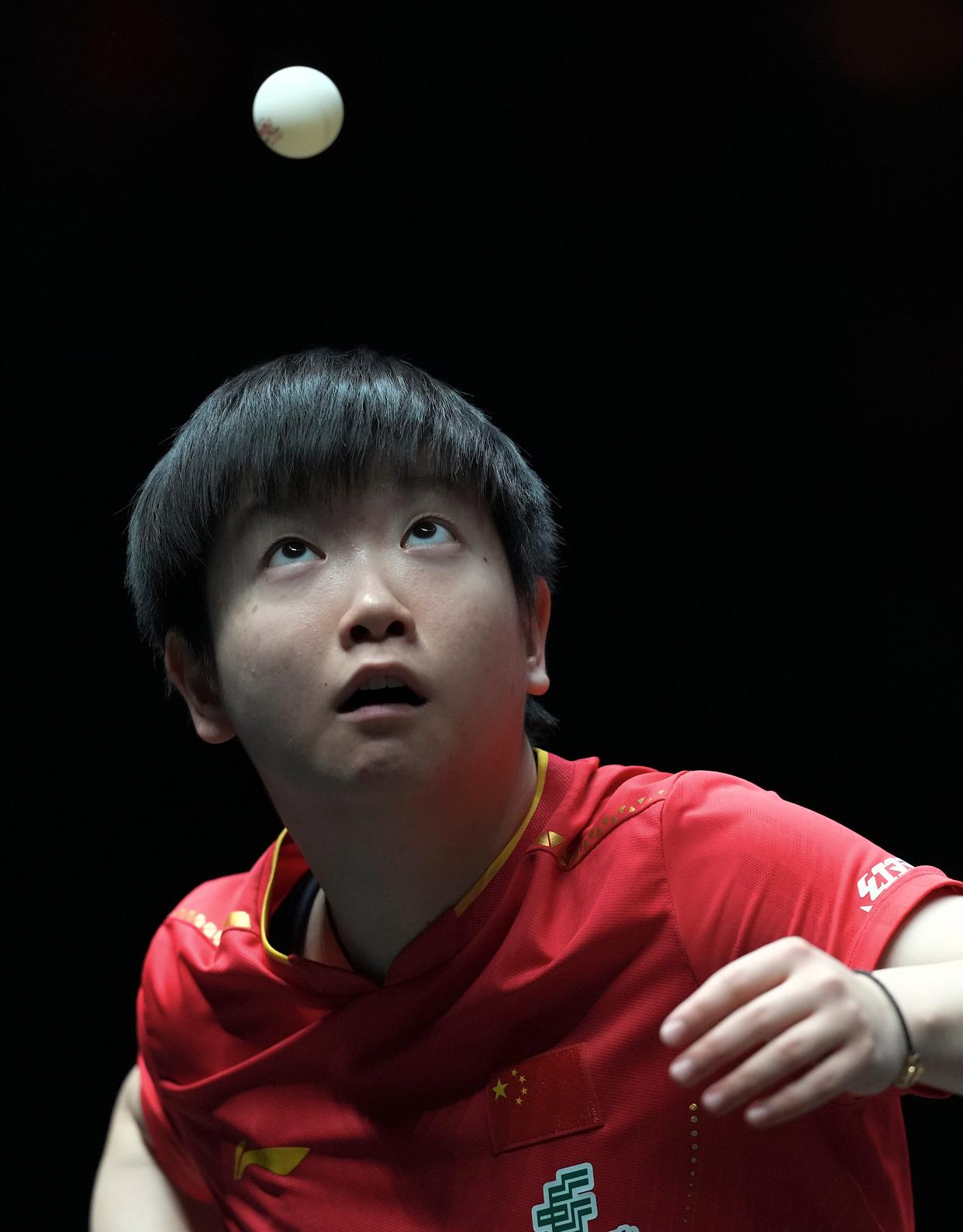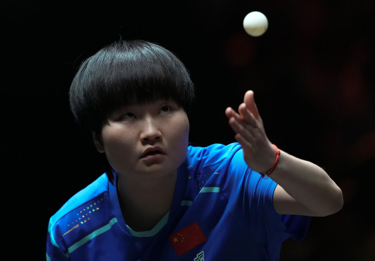 9月30日,孙颖莎在比赛中发球。新华社记者 孙非 摄