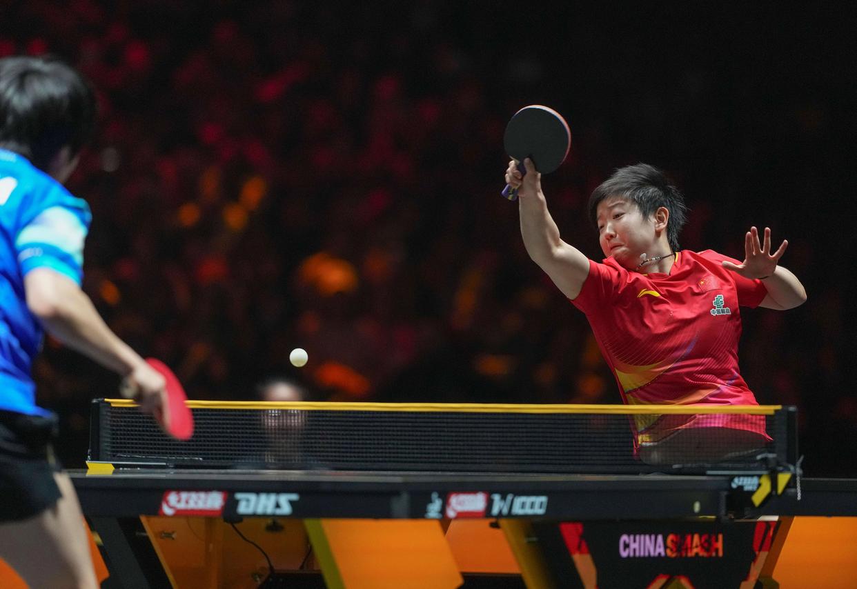 9月30日,孙颖莎在比赛中。新华社记者 孙非 摄