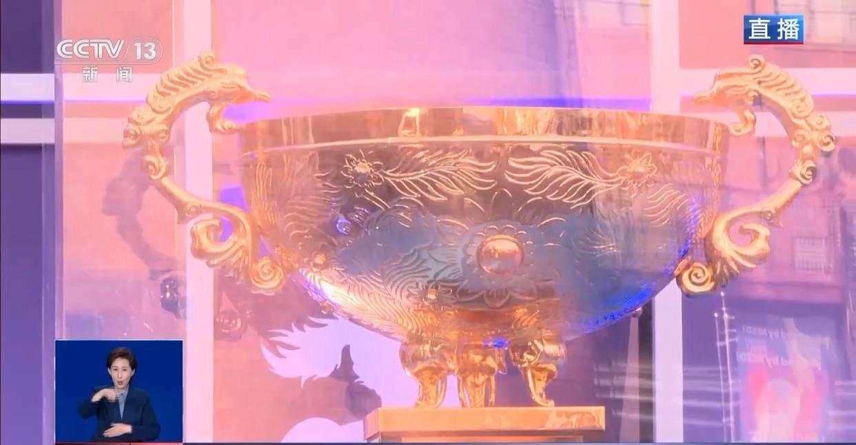 男子冠军奖杯取材于故宫博物院馆藏国宝“金瓯永固杯”,寓意江山社稷永固。