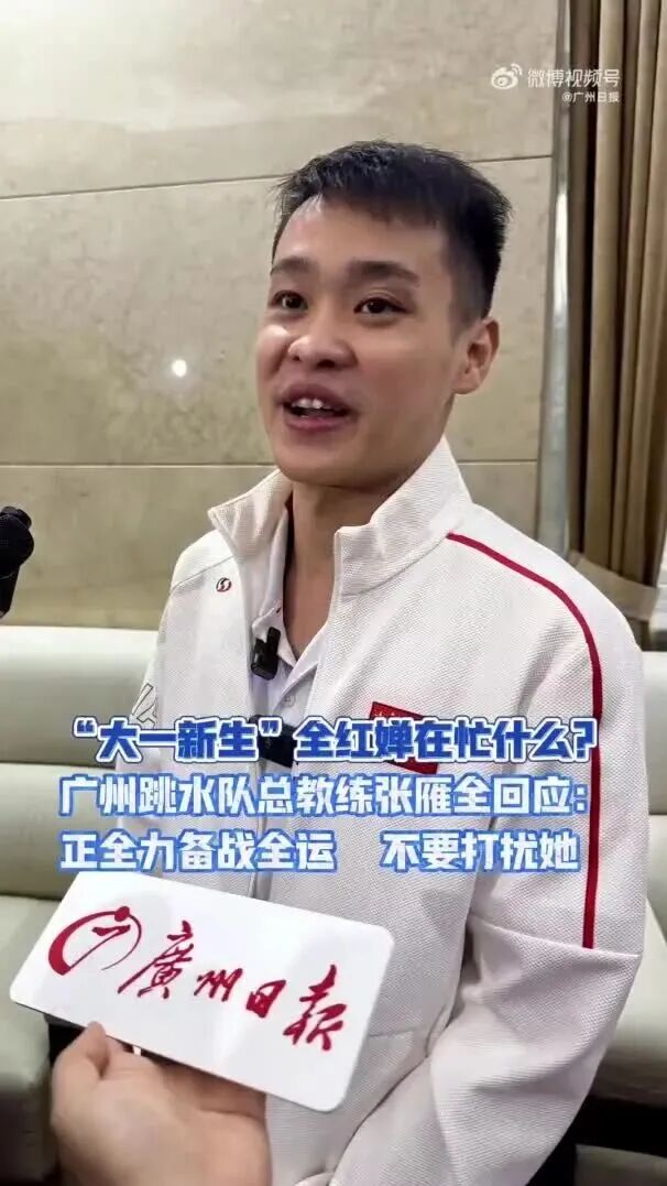 当记者问及全红婵如何平衡十五运备战和本科学习时,张雁全说全妹正全力备战全运,不要打扰她。