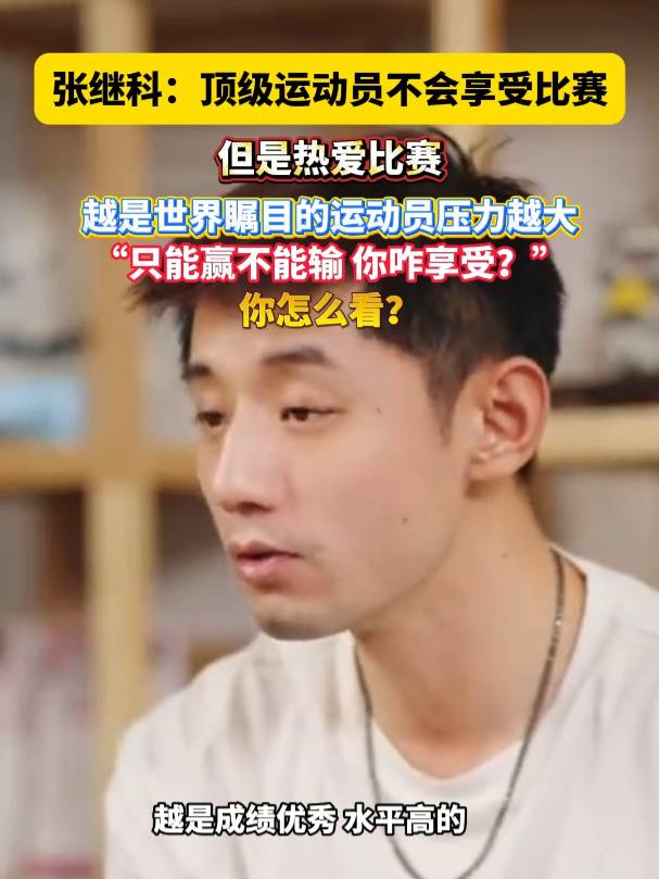 10月5日,张继科发布视频并配文:“顶级运动员不会享受比赛但是热爱比赛。”他在视频中说:“运动员里面越是成绩优秀水平高的,世界瞩目的运动员,他不可能享受比赛,(因为)压力太大。因为你只能赢不能输,咋享受。但我们喜欢这个比赛!”