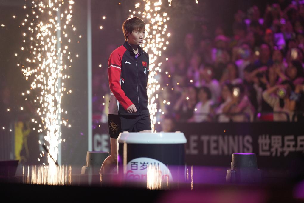 10月5日,王曼昱在女单决赛前入场。新华社记者 谢晗 摄