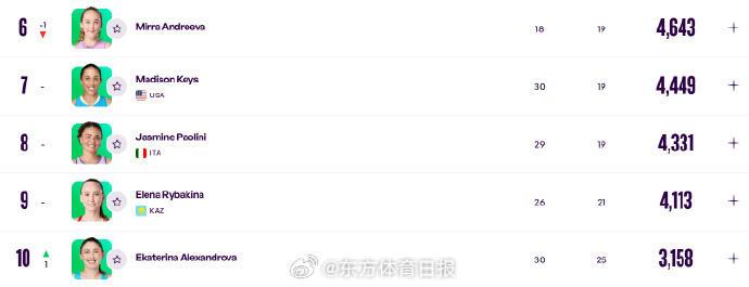 6-10:安德列娃4643、凯斯4449、鲍里妮4331、莱巴金娜4113、亚历山德洛娃3158