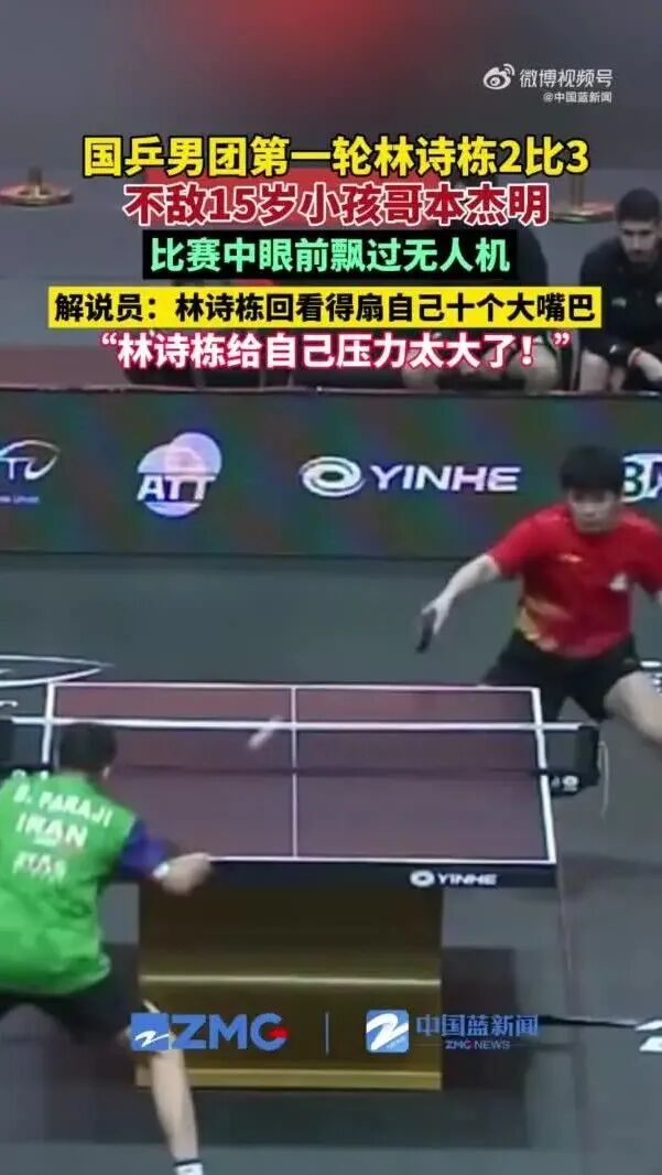 10月13日晚,国乒男团印度亚锦赛首秀,林诗栋第一个上场,遗憾2比3不敌伊朗15岁小孩哥本杰明。赛场解说员侯英超大喊:林诗栋给自己压力太大了!